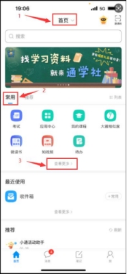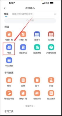 (5)登录后,在首页——常用——查看更多——应用中心——考试中可查看并进入考试,或在消息——收件箱中查看并进入考试(试题发布后方可查看考试信息,一般为考试前一小时左右)。进入考试后请核对考试科目名称,如有误请及时联系监考教师。