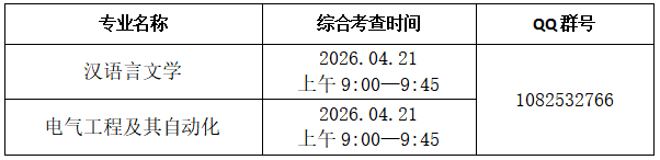 根据2026年退役大学生士兵考生首轮志愿选报我校情况,汉语言文学、电气工程及其自动化专业选报人数超过免试招生计划,选报以上两个专业的考生须参加我校组织的综合考查(注意:服役期间立三等功及以上且相关部门已审核通过的退役大学生士兵考生无需参加综合考查,全额录取),首轮志愿选报其他专业的考生无需参加综合考查。拟录取结果查询时间及方式将通过我校招生信息网另行通知,请考生及时关注。