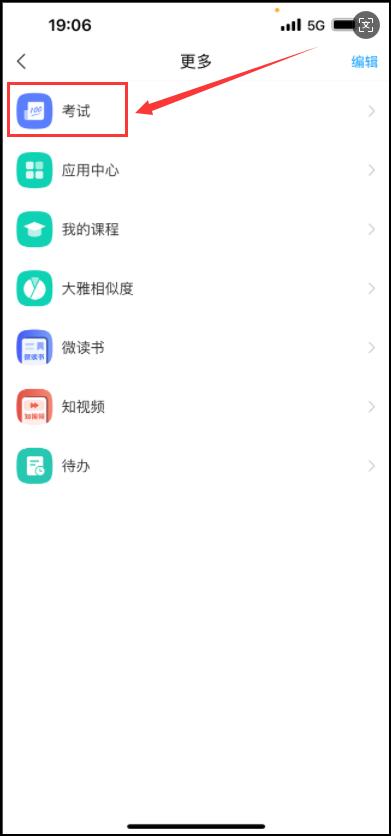 (5)登录后,在首页——常用——查看更多——考试中可查看并进入考试(请核对考试科目名称,如有误请及时联系监考教师)。